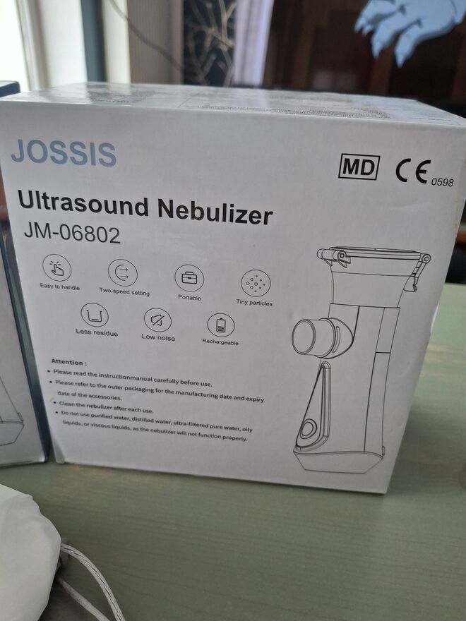 Cichy Nebulizator Siateczkowy JOSSIS JM-06802 | Przenośny | NOWY, nieużywany, sprawdzony wyjety do zdjęć, w jedny lekko rozerwana folia ze wzgledu na sprawdzenie.Na sprzedaż oferuję fabrycznie nowy, wysokiej jakości nebulizator siateczkowy (ultradźwiękowy) marki JOSSIS, model JM-06802. Jest to nowoczesne urządzenie do inhalacji, które dzięki technologii MESH pracuje niezwykle cicho i wydajnie.