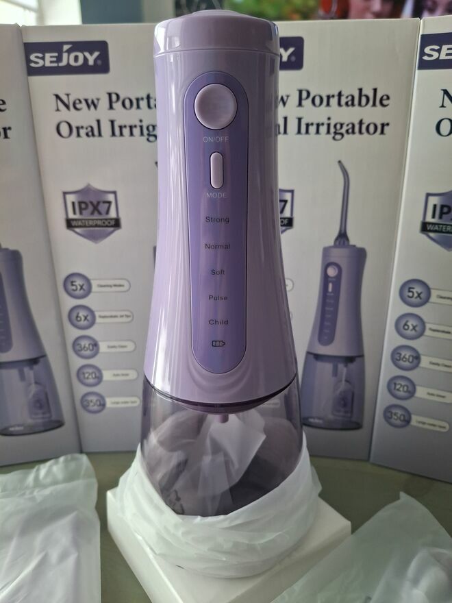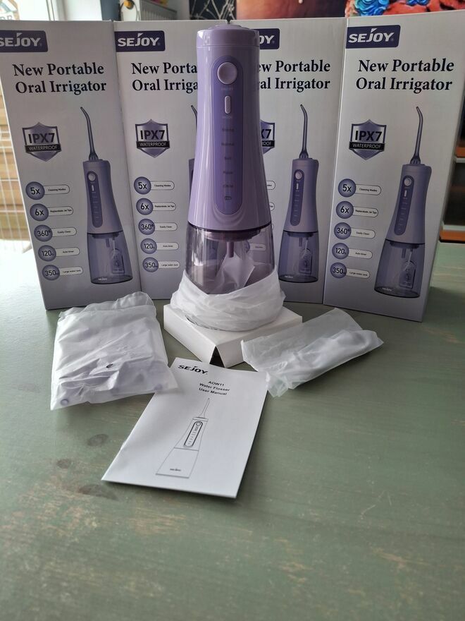Na sprzedaż posiadam fabrycznie nowe, przenośne irygatory dentystyczne marki Sejoy (model AOW11) w eleganckim fioletowym kolorze. Urządzenia są nieużywane – zostały wyjęte z opakowania wyłącznie w celu wykonania rzeczywistych zdjęć.Dlaczego warto wybrać ten model?