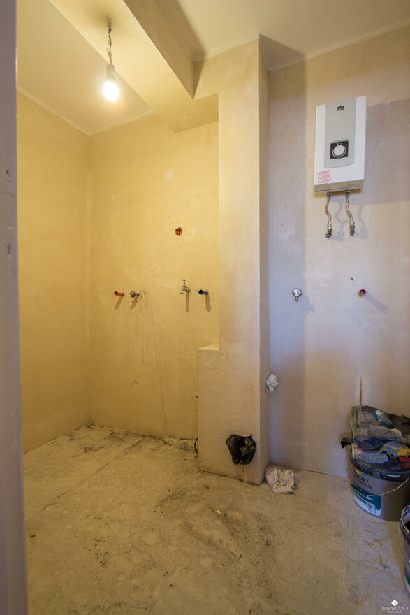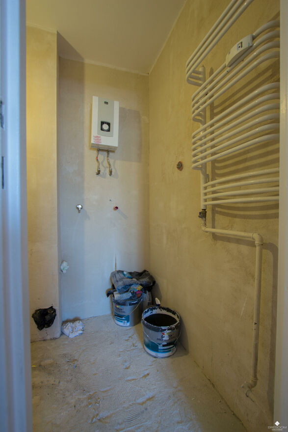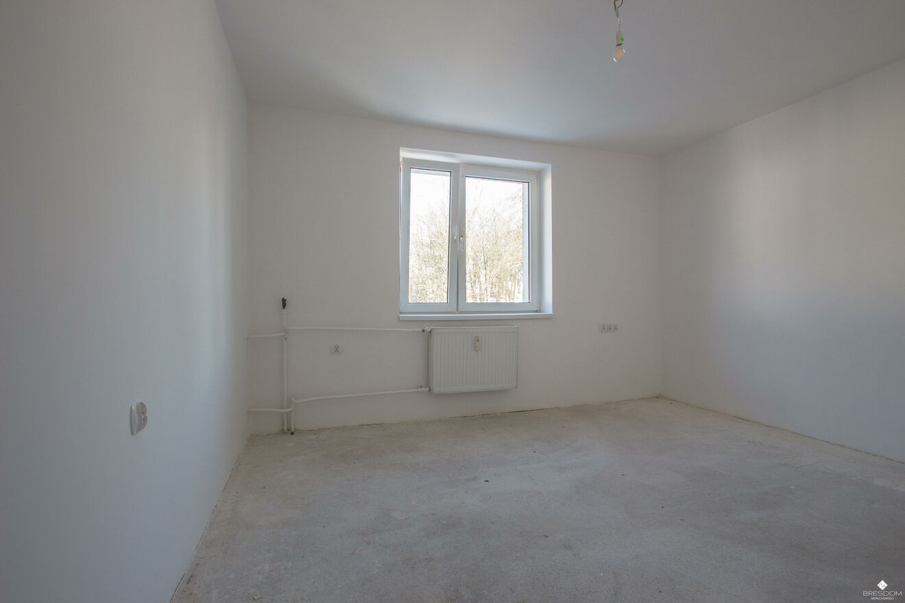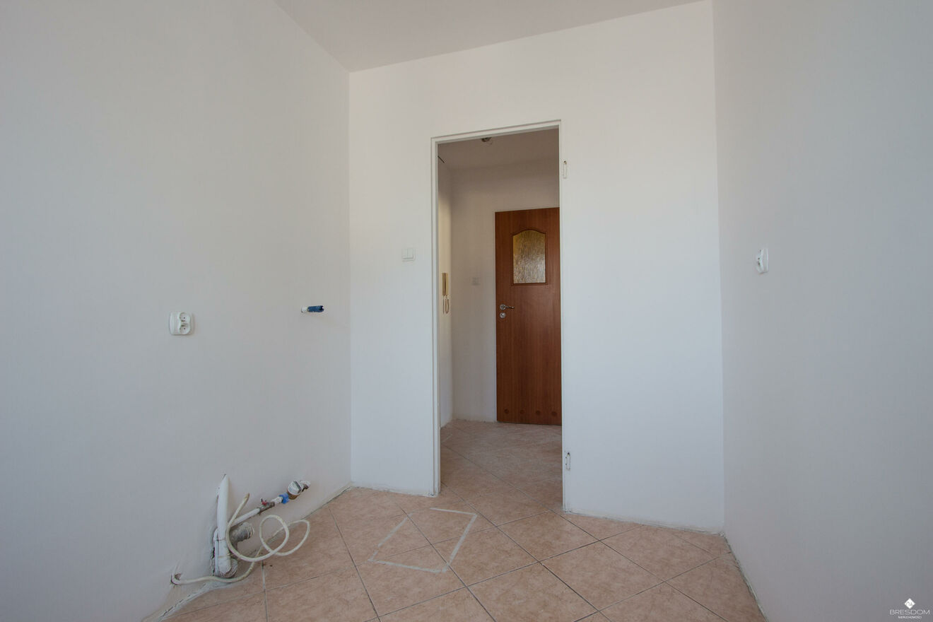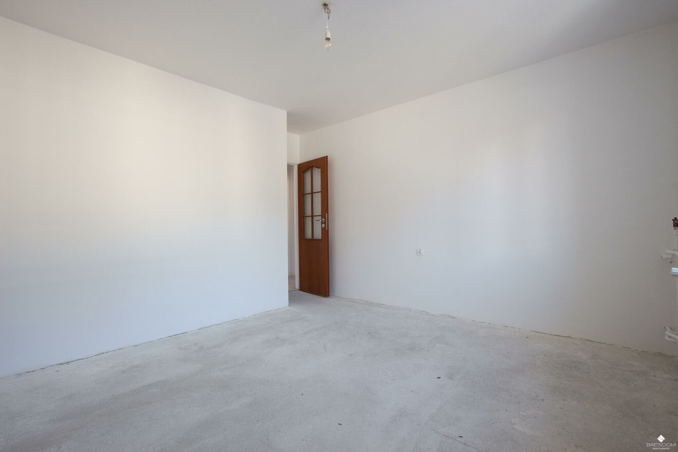 Mieszkanie zostało doprowadzone do stanu deweloperskiego, ściany są wyszpachlowane i pomalowane na biało, nowa instalacja elektryczna.