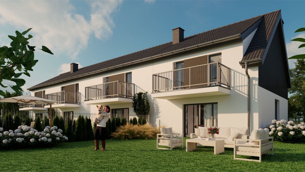 Mieszkania z garażami i dużymi ogrodami dostępne będą w następnym etapie sprzedaży.