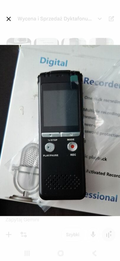 Na sprzedaż fabrycznie nowy, nieużywany dyktafon cyfrowy w najbogatszej wersji z pamięcią 64GB. Urządzenie zostało jedynie rozpakowane w celu sprawdzenia poprawności działania – jest w 100% sprawne, a na wyświetlaczu wciąż znajduje się folia ochronna.Dzięki ogromnej pamięci 64GB, dyktafon pomieści setki godzin nagrań bez konieczności częstego zgrywania danych na komputer.