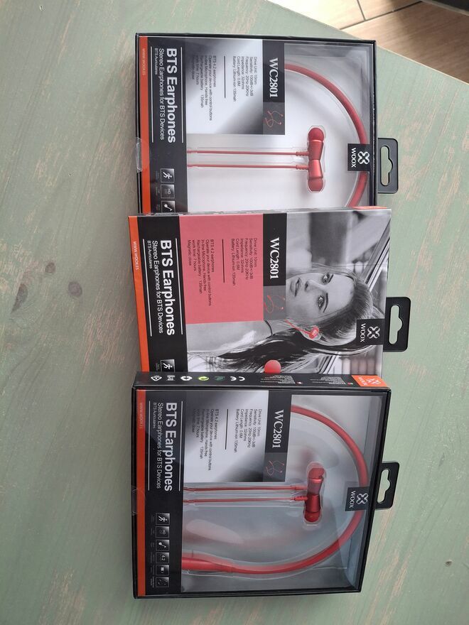 Sugerowany tytuł na Allegro: Słuchawki Bluetooth WOOX WC2801 Magnetyczne NOWE 7h, kup teraz 3 szt za 100zł